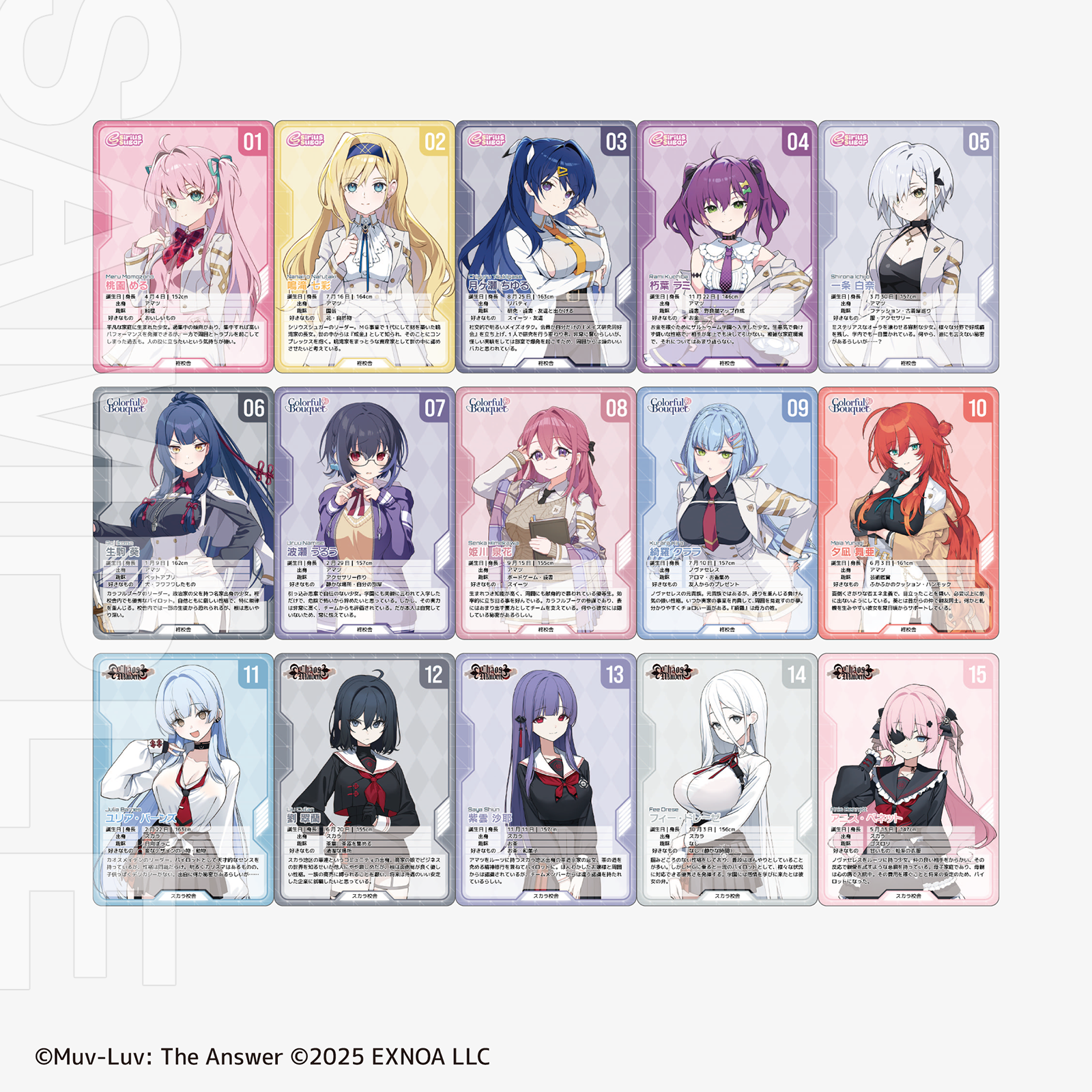 キャラクターカード全6種30名をコンプリートでお渡しします。