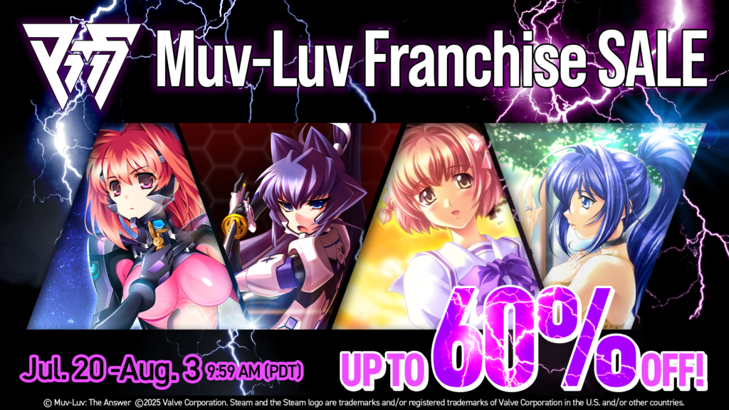 Starting July 20, 2025, we’re holding a special Steam sale featuring deep discounts on the Muv-Luv franchise.