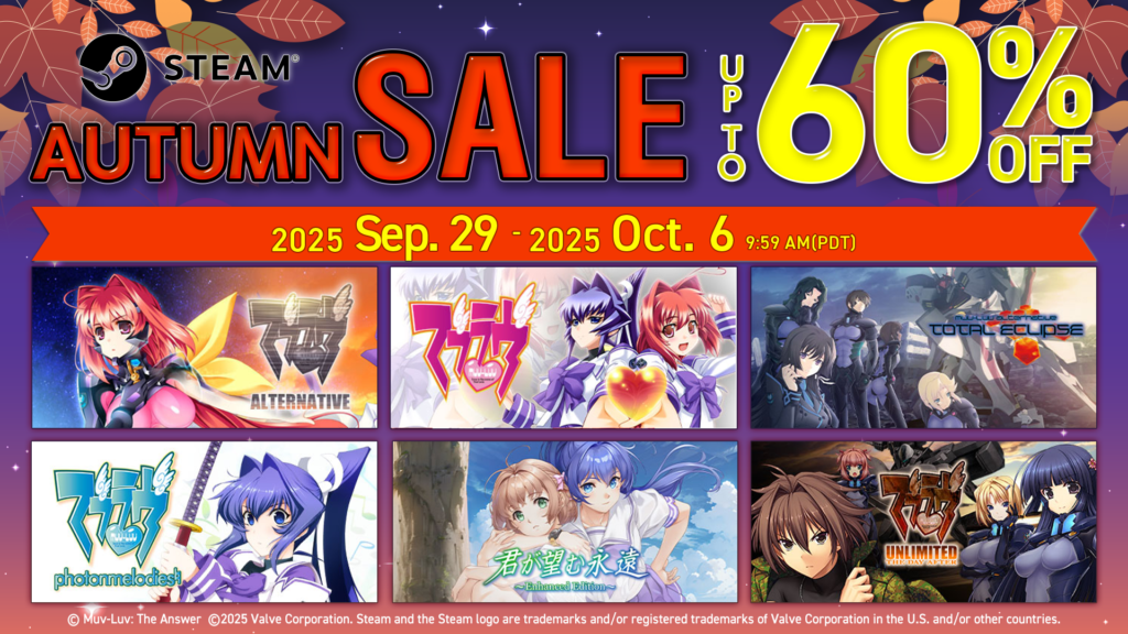 Starting September 29, 2025, the Muv-Luv series is available at special discounted prices during the Steam Autumn Sale.